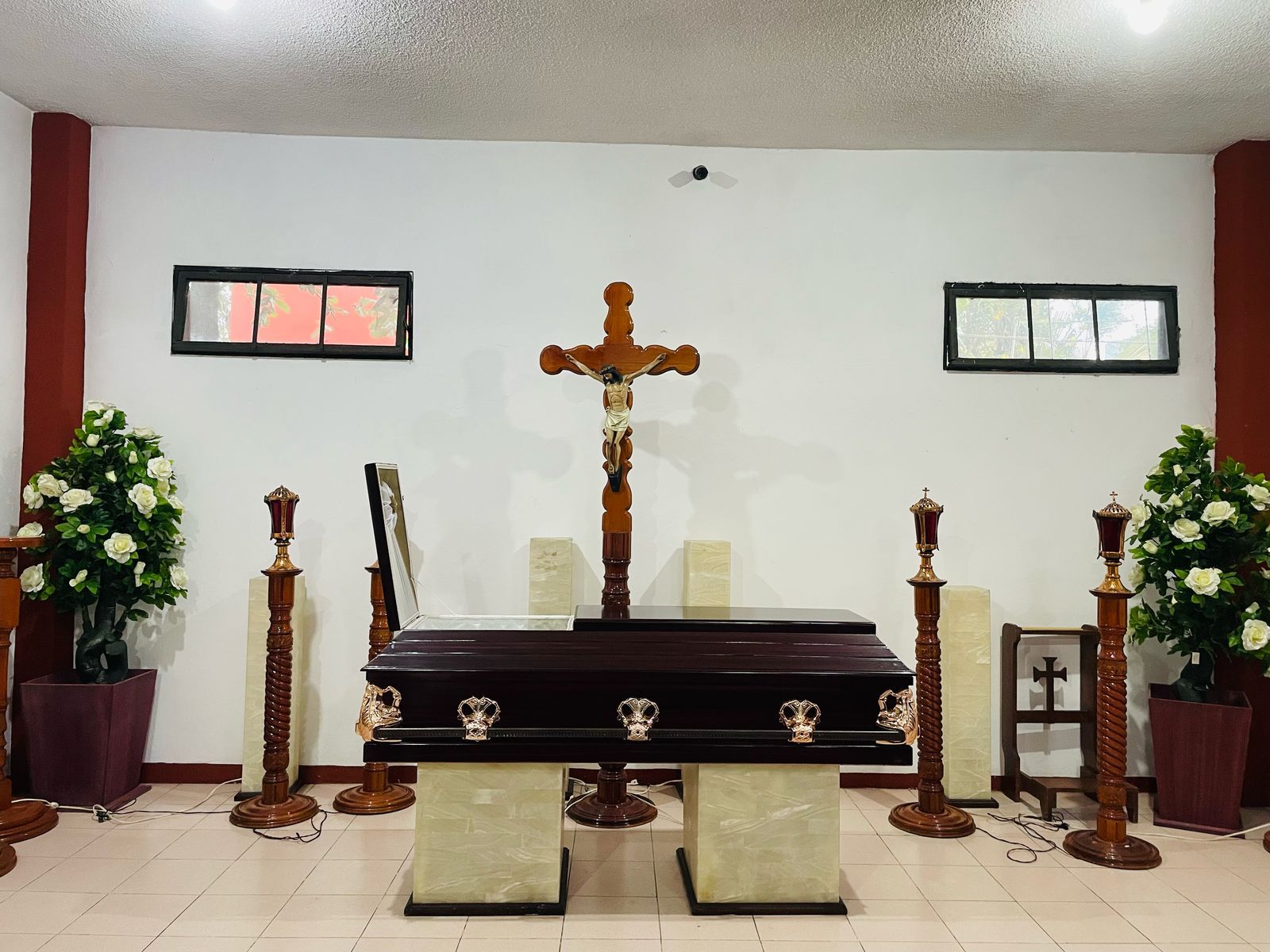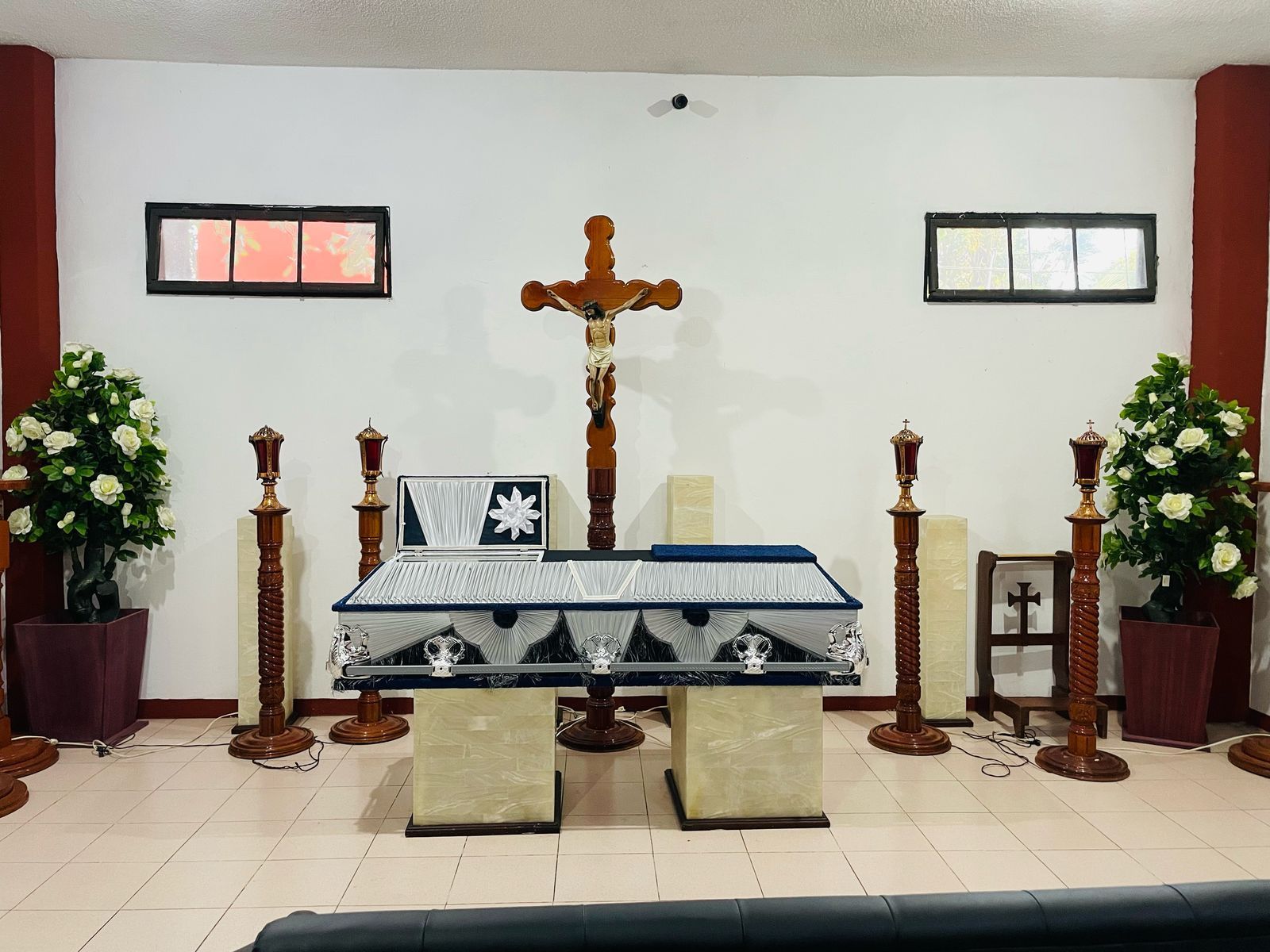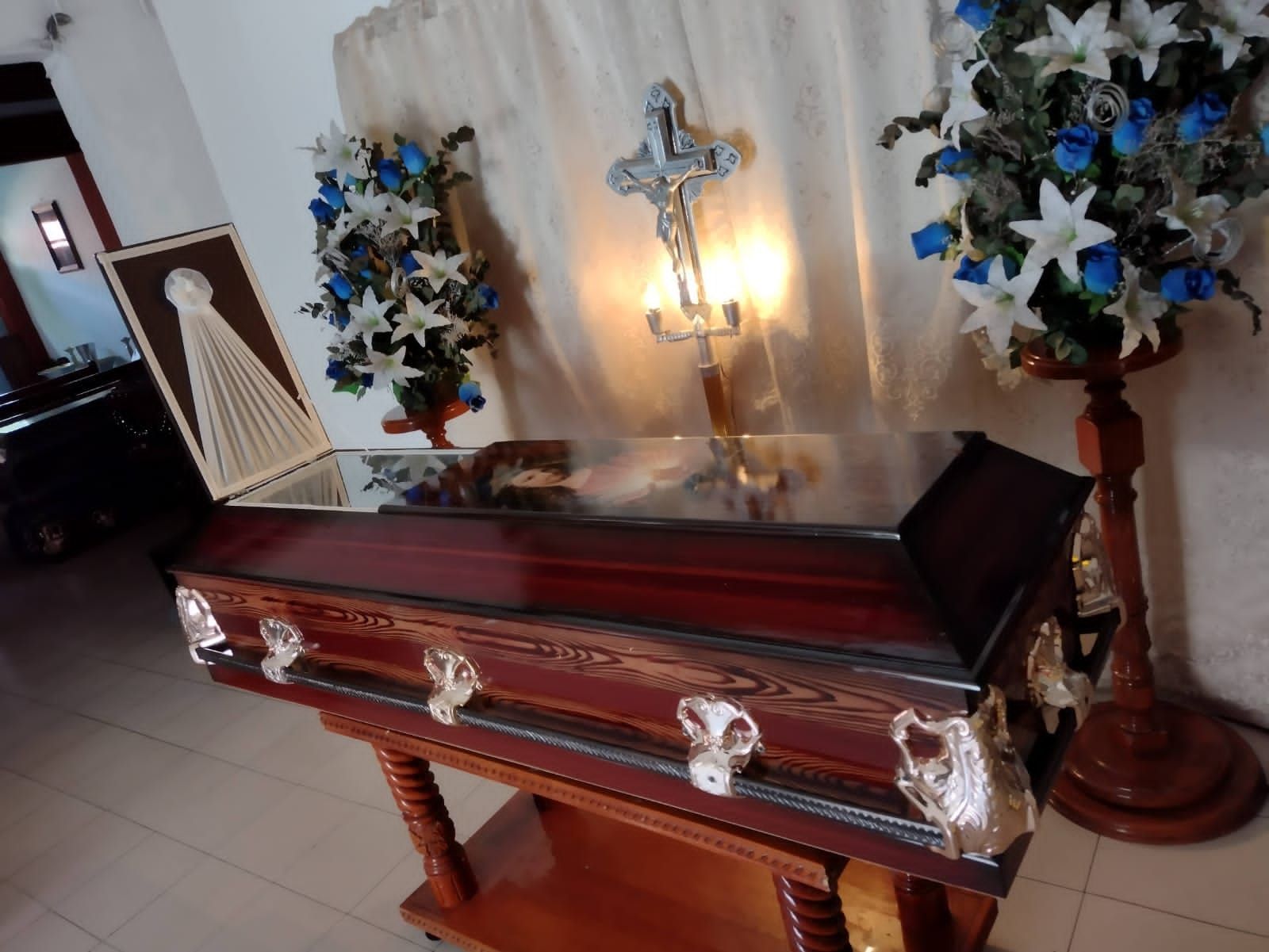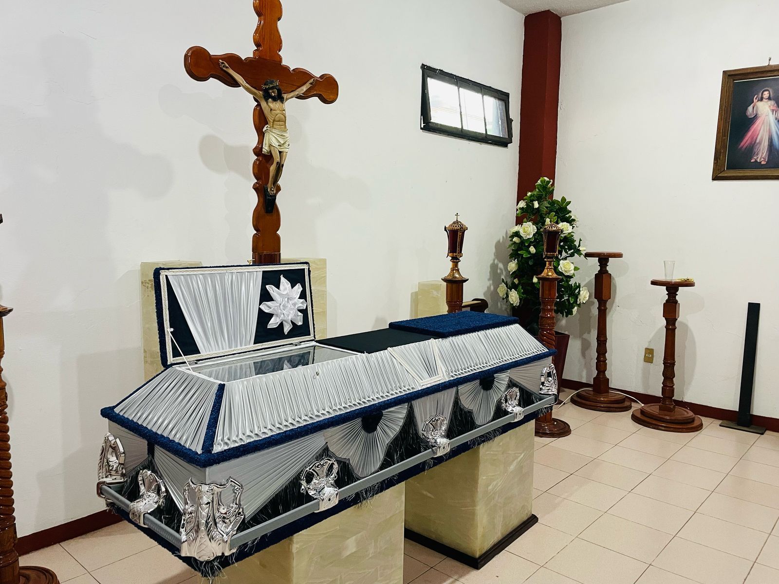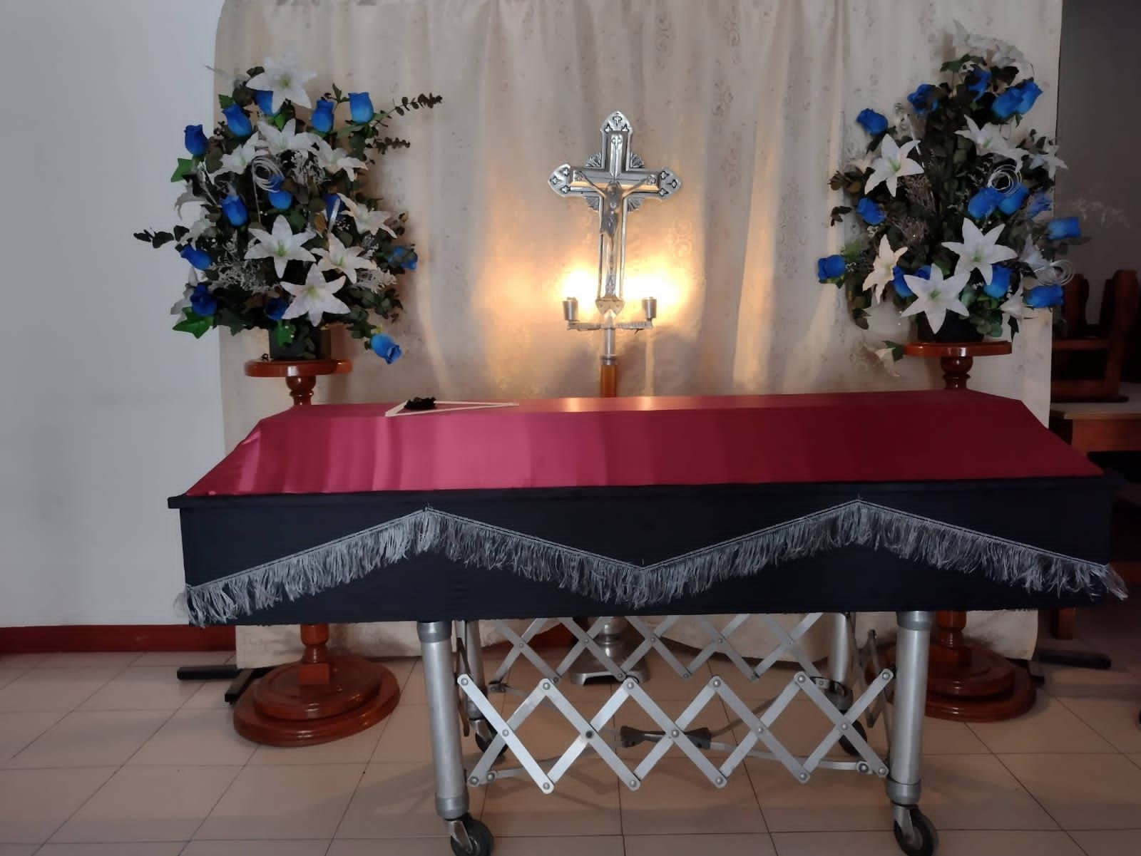- Equipo de velación por 9 días: 4 floreros, candeleros, cristos, pedestal, cortina, cafetería, flores, mobiliario (sillas)